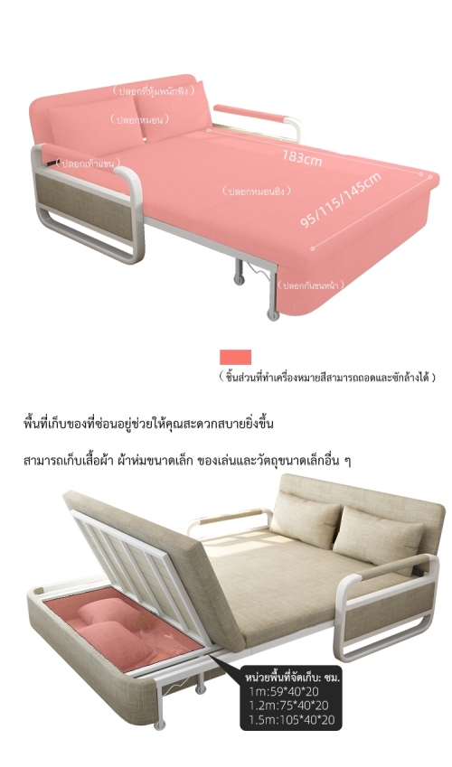 โซฟาปรับนอนของเราเก็บของได้เยอะ สะดวกสบาย ได้รับการรับรองระดับมืออาชีพ ผลิตภัณฑ์ที่ไว้วางใจได้ สิ่งเดียวใช้ได้สองแบบ เตียงเหล็กคุณภาพสูง + แผ่นไม้รองเตียงไม้เนื้อแข็ง คุณภาพดีกว่าร้านอื่น