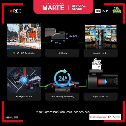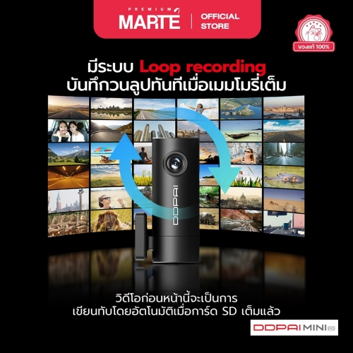 - มีระบบ Loop recording บันทึกวนลูปทันทีเมื่อเมมโมรี่เต็ม