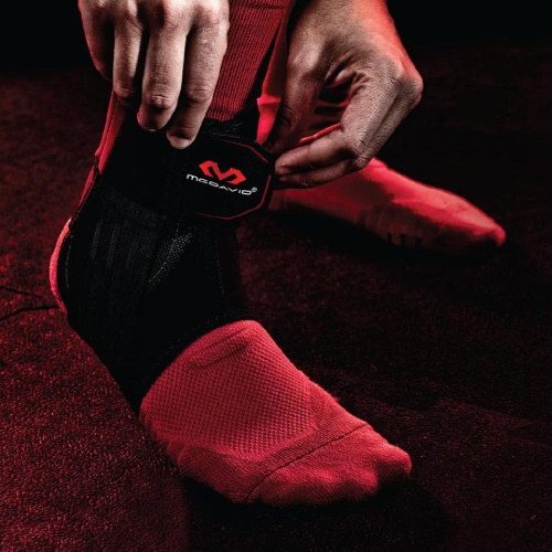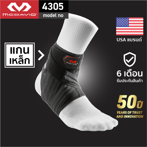 ออกแบบพิเศษสำหรับป้องกันการบาดเจ็บของข้อเท้า เอ็นข้อเท้า อย่างสมบูรณ์แบบ มีการป้องกันถึง 3 ชั้น ปลอกข้อเท้าที่ทําด้วยวัสดุพิเศษของ MCDAVID พร้อมอลูมิเนียมโค้งรับข้อเท้า แถบรัดรอบข้อเท้าเลข 8 และแถบรัดด้านบน
