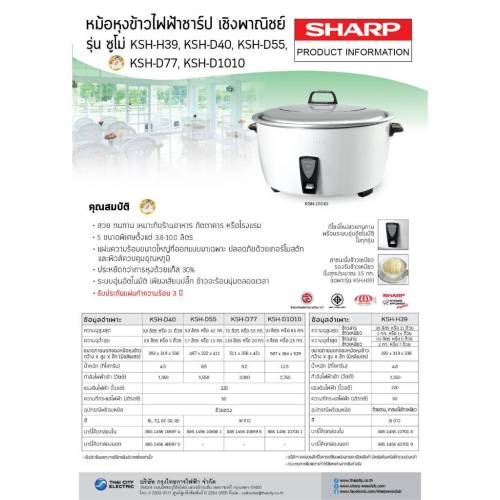 - ขนาดใหญ่ จุถึง 7.0 ลิตรหุงครั้งเดียวได้ข้าวสวยร้อนๆ ถึง 60 จาน เหมาะสำหรับร้านอาหาร ภัตตาคารและโรงแรม