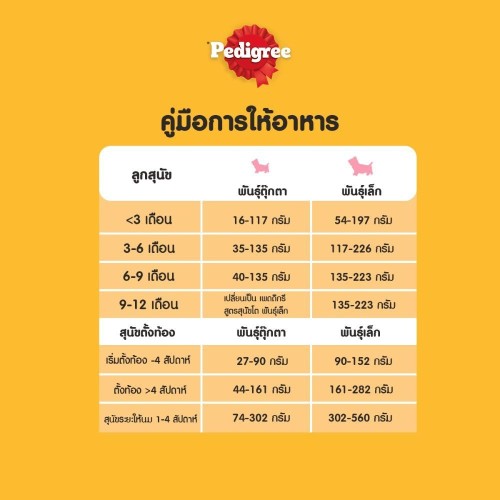 PEDIGREE อาหารเม็ดสุนัขสำหรับลูกสุนัขถูกออกแบบมาเพื่อส่งเสริมการเจริญเติบโตและพัฒนาการที่ดี ด้วยสารอาหารที่จำเป็น เช่น ดีเอชเอ ใยอาหาร และแคลเซียม ซึ่งช่วยในการพัฒนาการทางสมองและระบบย่อยอาหาร นอกจากนี้ยังมีแคลเซียมและฟอสฟอรัสเพื่อเสริมสร้างกระดูกและฟันให้แข็งแรง และกรดไขมันโอเมก้า 6 กับสังกะสีที่บำรุงผิวหนังและขนให้สุขภาพดีและเงางาม