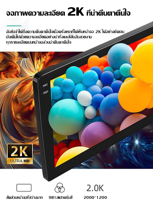 3.หน้าจอ Qled :RAM4GB , ROM64GB รองรับการแสดงผล 2 หน้าจอ ระบบเสียง DSP เต็มรูปแบบ **(เฉพาะรุ่น 4+64 เท่านั้น)**ความละเอียดหน้าจอ 1920 × 1200
