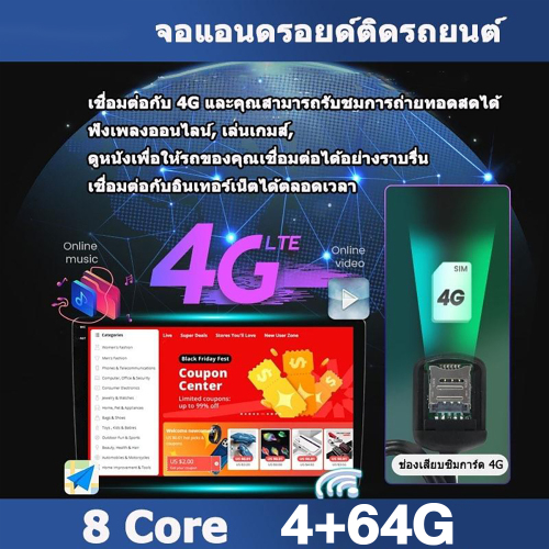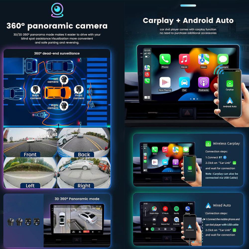 2.RAM4GB , ROM64GB รองรับการแสดงผล 2 หน้าจอ ระบบเสียง 48 Band EQ เต็มรูปแบบ **ฟังก์ชั่นซิมการ์ด 4G คาร์เพลย์ไร้สายและ Android Auto ระบบกล้องพาโนรามา 360 ความละเอียดหน้าจอ 1920 × 1200