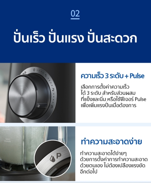 โปรแกรมการปั่น 3 ระดับ + Pulse เพื่อการปั่นกระแทกน้ำแข็งให้เนียนละเอียด