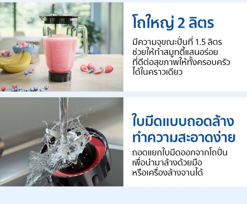 *เทียบกับ HR2225 ในการปั่น สตรอเบอร์รี่แช่แข็ง 120g กล้วยแช่แข็ง 80g น้ำ 300ml