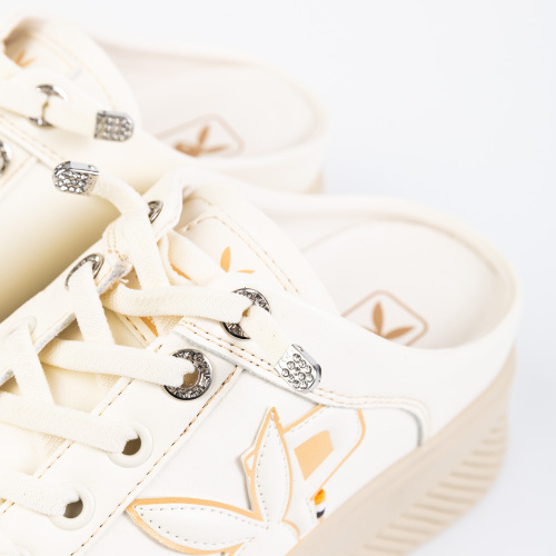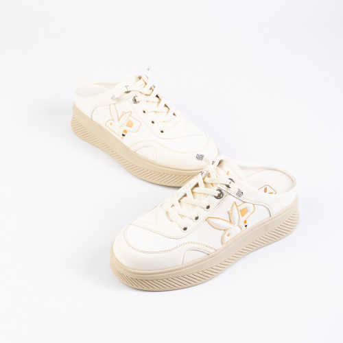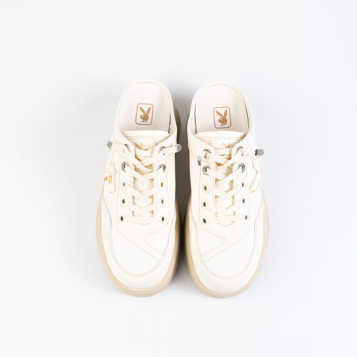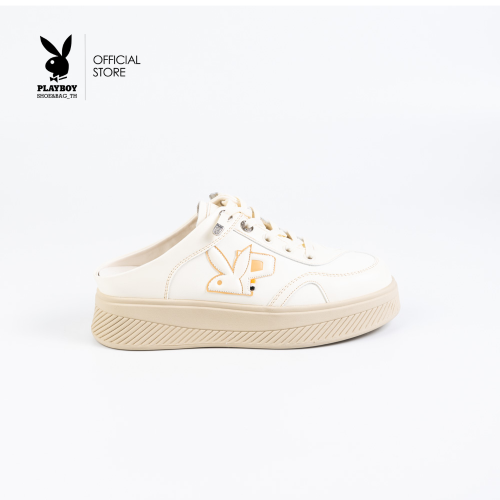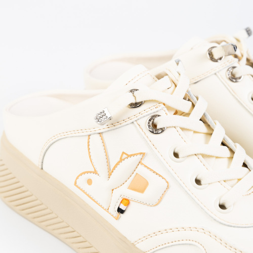 PLAYBOY Mule Sneakers รองเท้าผ้าใบเปิดส้น รุ่น ST-H251C1206 ดีไซน์แต่งโลโก้กระต่าย อะไหล่ฝังเพชร สี Creamy white(CR)