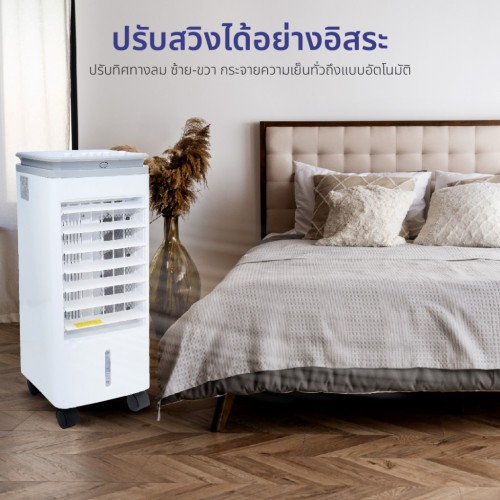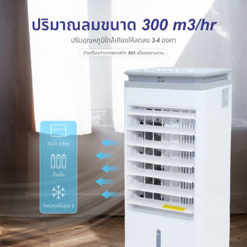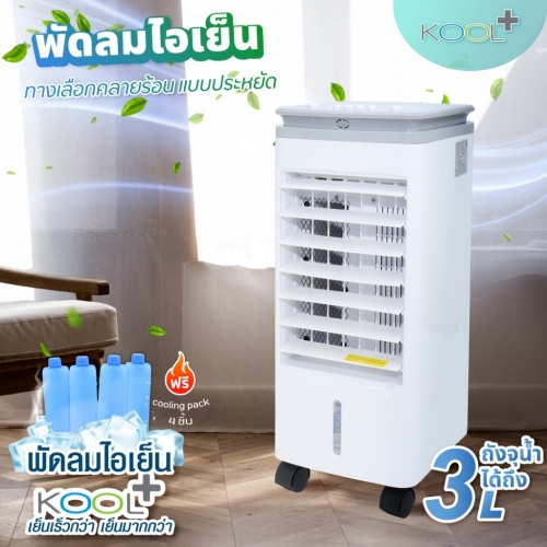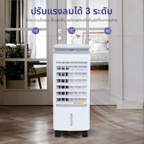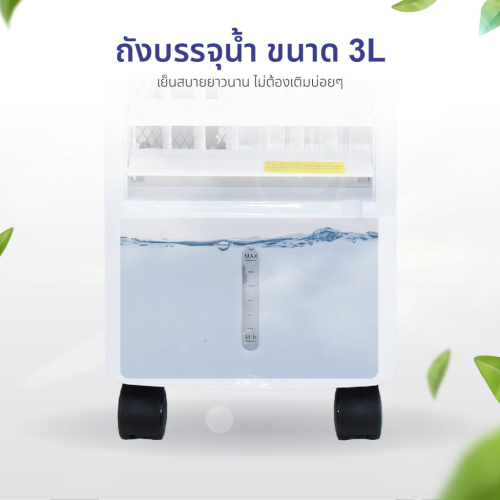 • มีล้อเคลื่อนที่ได้สะดวก แรงลมเย็นสดชื่นด้วยช่องใส่น้ำและน้ำแข็ง