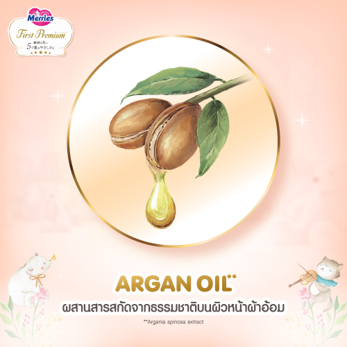 ผสานสารสกัด Argan Oil บริสุทธิ์จากธรรมชาติบนผิวหน้าผ้าอ้อมที่สัมผัสกับผิวเมจิกเทปโค้งมนสุดนุ่ม ยืดหยุ่น ติดได้หลายครั้ง (แบบเทป)
