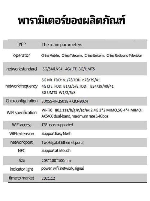 - ใช้เสาอากาศรับสัญญาณสูงรอบทิศทางแบบสี่ทิศทางเพื่อมอบเครือข่าย 5G ความเร็วสูงสำหรับผู้ใช้ Wi-Fi สูงสุด 128 คนพร้อมกัน