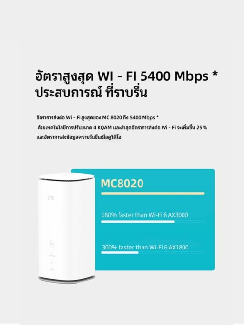 เพื่อรองรับความต้องการในการถ่ายทอดสดที่เพิ่มขึ้นอย่างรวดเร็ว เราเตอร์ ZTE 5G Indoor CPE MC8020 รุ่นที่ 3 นี้ได้นำเสนอการเชื่อมต่อ 5G คุณภาพสูง แก้ไขปัญหาการติดขัดของเครือข่ายในสถานการณ์ที่ซับซ้อน สอดคล้องกับข้อกำหนดการตั้งค่าระดับองค์กร และมีการตั้งค่าที่เป็นมิตรต่อผู้ใช้เพื่อการเชื่อมต่อภายในบ้านอย่างชาญฉลาดที่ง่ายขึ้น