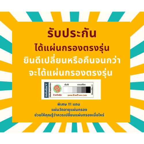 * ทางร้านยินดีเปลี่ยนแผ่นกรองให้ตรงรุ่นที่ลูกค้ามีหากมีการสั่งซื้อผิดพลาด แต่เพื่อป้องกันการเสียเวลาและค่าใช้จ่ายในการส่งสินค้ากลับมาเปลี่ยน จึงควรเช็ครหัสรุ่นให้ตรงกับที่ระบุ