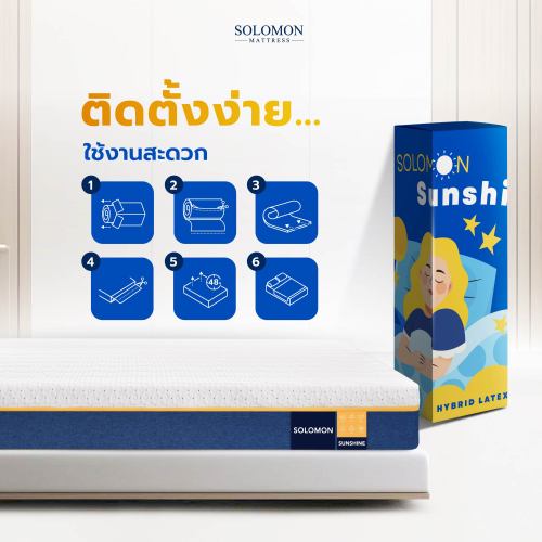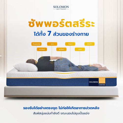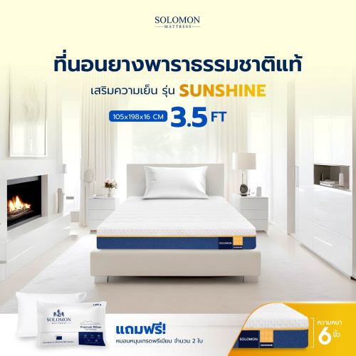 SOLOMON ที่นอนยางพาราแท้ ลดแรงกดทับ บอกลาอาการปวดหลัง สัมผัสนุ่มแน่น รุ่น Sunshine One/6ฟุต หนา8นิ้ว