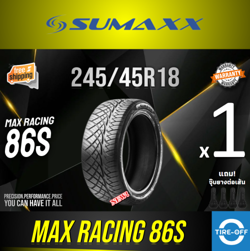 SUMAXX 245/45R18 MAX RACING 86S ยางใหม่ ผลิตปี2025 ราคาต่อ1เส้น แถมจุ๊บลมยางต่อเส้น ยางรถยนต์ ซูแม็ก ขอบ18 ขนาดยาง 245 45R18 86S จำนวน 1 เส้น 245/45R18 One