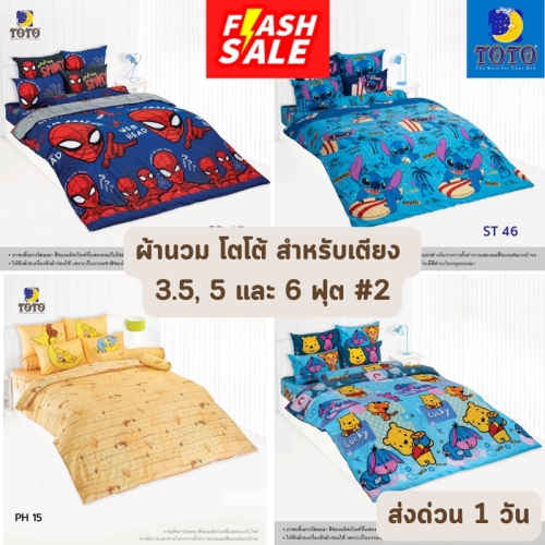ผ้าห่ม มี 3 ขนาด คือ ผ้าห่มนวมเอนกประสงค์ TOTO ขนาด 60x80 นิ้ว สำหรับเตียง 3.5 ฟุต (ห่ม 1 คน)