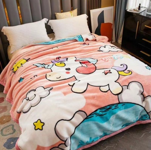 ผ้าห่มขนมิ้งค์ 2 ชั้น ขนาด 6 ฟุต น้ำหนัก 2.5 Kg. ลายการ์ตูนหลากหลายแบบ ลิงถือชีส One
