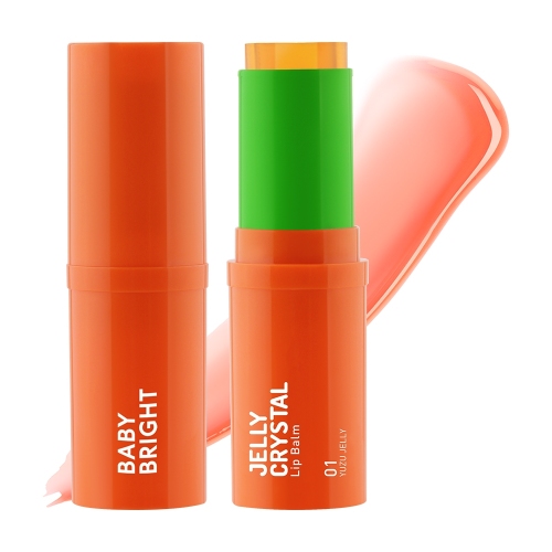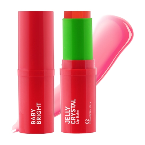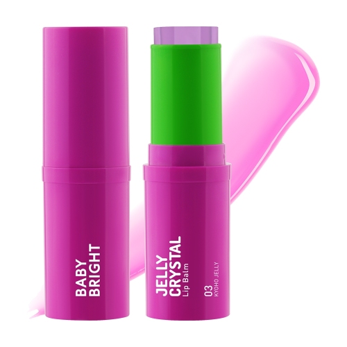 เบบี้ไบร์ท เจลลี่คริสตัลลิปบาล์ม บาล์มเจลลี่ที่มาในรูปแบบแท่ง เกลี่ยง่าย ไม่เหนอะผิว เปลี่ยนสีตามค่า pH ของผิว เติมสีสันให้พวงแก้ม ดวงตา และริมฝีปากดูน่ารักสดใส เสริมคุณค่าสูตรวีแกน 100% ด้วยสารสกัดจากเมล็ดองุ่น (Vitis Vinifera (Grape) Seed Oil) และสารสกัดจากพีช (Prunus Persica (Peach) Fruit Extract) ทำหน้าที่เป็นสารแอนตี้ออกซิแดนท์ ช่วยผลัดเซลล์ผิวเก่าให้หลุดลอกอย่างอ่อนโยน บำรุงผิวให้เนียนนุ่มชุ่มชื้น ลดความหมองคล้ำให้ผิวแลดูกระจ่างใส พร้อมผสานคุณประโยชน์จากน้ำมันเมล็ดมีโดว์โฟม (Limnanthes Alba (Meadowfoam) Seed Oil) และเซราไมด์ (Ceramide) ช่วยลดเลือนริ้วรอย และชะลอการเกิดริ้วรอยก่อนวัย น้ำมันเมล็ดโจโจ้บา (Simmondsia Chinensis (Jojoba) Seed Oil) ช่วยให้ริมฝีปากดูสุขภาพดี ไม่แห้งกร้าน ทั้งยังมีน้ำมันเมล็ดละหุ่ง (Ricinus Communis (Castor) Seed Oil) น้ำมันมะกอก (Olea Europaea (Olive) Fruit Oil) วิตามินซี วิตามินอี และ Squalane ช่วยเพิ่มความยืดหยุ่นให้กับผิว ฟื้นบำรุงริมฝีปาก ดวงตา และพวงแก้มให้เรียบเนียน เปล่งปลั่ง โกลว์ใส แลดูสุขภาพดีอย่างเป็นธรรมชาติ ปราศจากแอลกอฮอล์และพาราเบน