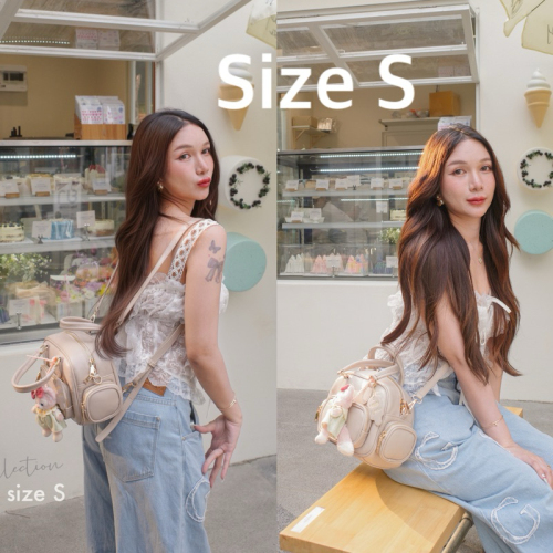 SizeS ไซส์ 9 นิ้ว สามารถสะพายเป็นเป้ได้ มีสาย 2 เส้นให้