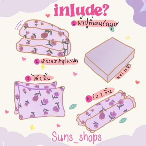 ผ้าปูที่นอน ปลอกหมอน ปลอกหมอนข้าง อาจจะไม่ตรงตามแบบ 100%