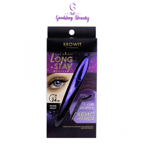 Browit Star Galaxy Long Stay Mascara 8g #Dark Night มาสคาร่าเพิ่มความยาวให้ขนตาแบบเส้นต่อเส้น เพื่อขนตายาว โค้งงอน เรียงเส้นสวยเหมือนต่อขนตา ติดทนยาวนานตลอดวัน เนื้อมาสคาร่าไม่จับตัวเป็นก้อน ไม่หนักตา ให้ความเบาสบาย ให้ความสวยที่เป็นธรรมชาติ ใช้เมคอัพรีมูฟเวอร์ล้างออกได้อย่างง่ายดาย ไม่ระคายเคืองผิวรอบดวงตา อีกทั้งยังมีวิตามินบี5 ช่วยบำรุงขนตาให้ชุ่มชื่น เงางาม ลดโอกาสขนตาหลุดร่วง
