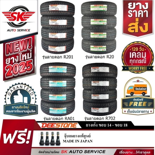ยางรถยนต์มาตรฐานสูงเกรดส่งออกทั่วโลกยี่ห้อยาง : DEESTONE รุ่นลายดอกยาง : ขึ้นอยู่กับแต่ละขนาดยางที่ผลิต ผลิตที่ : ประเทศไทยปียางที่ผลิต : ยางล๊อตใหม่กริ๊ปปี 2025*** มีบริการติดตั้ง ***วิธีการสั่งซื้อสินค้า เลือกขนาดยางที่ช่อง คลิ๊ก "เลือกตัวเลือกสินค้า" ให้ตรงกับขนาดยางปัจุบันที่ใช้อยู่ที่รถ( ขนาดยางเดิมจะดูได้จากแก้มยางปัจจุบันที่ลูกค้าใช้อยู่ที่รถ )ของแถม 2 รายการตามที่โชว์บนหน้าเวปราคาที่แสดงจะเป็นราคาต่อ 1 ชุด สั่งจำนวน 1 ชุด ได้ 4 เส้น โดยราคาจะเปลี่ยนตามแต่ละขนาดยางที่เลือกค่ะ====================|| ขนาดยางที่มีจำหน่าย ||=====================================================================================สำหรับรถเก๋งล้อขอบ 14 : 175/65R14,185/65R14 =====================================================================================สำหรับรถเก๋งล้อขอบ 15 : 185/55R15 , 185/60R15 , 185/65R15 ,195/50R15 , 195/55R15 , 195/60R15 , 195/65R15=====================================================================================สำหรับรถเก๋งล้อขอบ 16 : 185/55R16 , 195/50R16 , 205/55R16 , 215/60R16=====================================================================================สำหรับรถเก๋งล้อขอบ 17 : 205/45R17 , 215/45R17 , 215/55R17 =====================================================================================สำหรับรถเก๋งล้อขอบ 18 : 225/45R18 , 245/45R18=====================================================================================ขนาดยางสำหรับ รถเก๋ง ขนาดเล็ก ถึง ขนาดใหญ่ นโยบายการจัดส่งสินค้า►ยางใหม่กริ๊ปปี 2025 ส่งตรงจากโรงงานผู้ผลิต จัดส่งรวดเร็วออกจากโกดังสินค้า วันต่อวัน►ยางทุกเส้นมีการรับประกันสินค้าโดยตรงจากโรงงานผู้ผลิต ตามมาตรฐานและระยะเวลาที่โรงงานกำหนด►ยางทุกเส้นทุกแพ็คอย่างดีด้วยเครื่องแพ็คเกจจิ้งมาตรฐานสูงพร้อมส่งมอบถึงมือลูกค้าอย่างปลอดภัย►หลังจากสั่งซื้อสินค้า มีพนักงานโทรเฟริมสินค้า คอยให้คำปรึกษา และแจ้งกำหนดวันจัดส่งอย่างชัดเจน►สินค้าส่งด่วนฟรี ถึงหน้าบ้านทุกที่ทั่วไทย โดย FLASH express#ยางรถยนต์ #ยางรถเก๋ง #ยางรถยนต์ขอบ14 #ยางรถยนต์ขอบ15 #ยางรถยนต์ขอบ16 #ยางรถยนต์ขอบ17 #ยางรถยนต์ขอบ18