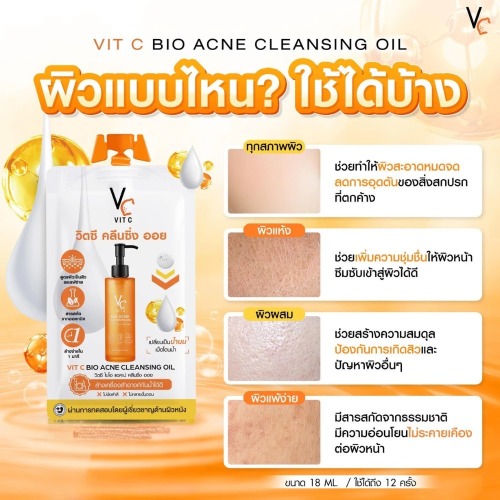 VC Vit C Bio Acne Cleansing Oil 18ml. คลีนซิ่งออยล์