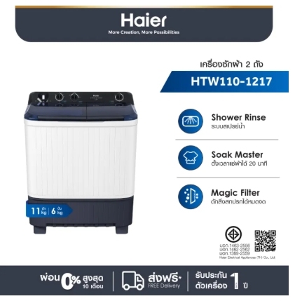 รายละเอียดสินค้า Haier เครื่องซักผ้า 2 ถัง กึ่งอัตโนมัติ ความจุ 11 kg รุ่น HTW110-1217