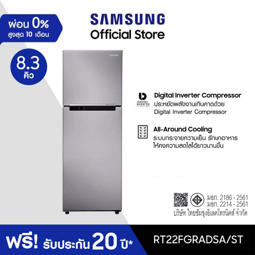 Samsung ตู้เย็น Digital Inverter 2 ประตู 8.3Qu รุ่น RT22FGRADSA/ST (สีเงิน) ที่มาพร้อมหลากหลายคุณสมบัติภายในที่รอให้คุณมาใช้งานทั้งระบบกระจายความเย็นแบบทั่วถึงทุกซอกทุกมุมภายในตู้เย็น พร้อมระบบ Cooling Pack ที่พร้อมให้ความเย็นได้อย่างต่อเนื่องแม้ในกรณีที่ตู้เย็นเกิดเหตุต้องหยุดชะงักสำหรับการทำงาน ประหยัดไฟด้วยระบบ Digital Inverter Compressor สามารถปรับความเย็นได้ 7 ระดับ ตอบสนองของผู้ใช้งานได้เป