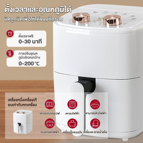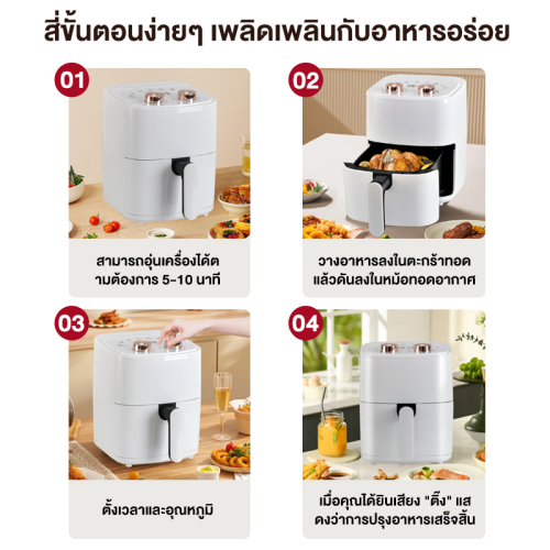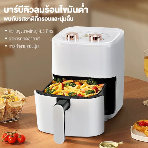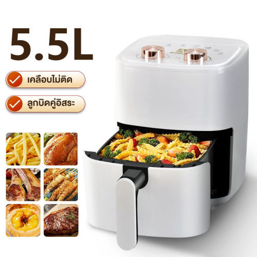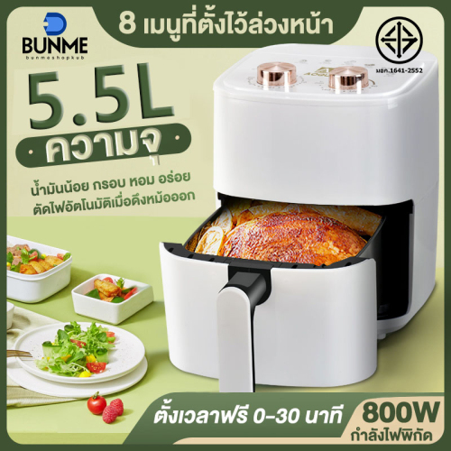 BUNME airfryer ไก่ทอด ความจุสูง5.5L หม้อทอดไร้น้ำมัน หม้อไร้น้ำมัน หม้ออบไรน้ำมัน หม้อทอดไร้มัน หม้อทอดไร้มัน ไม่ต้องใช้น้ำมัน ไม่เกิดควัน 5.5L white-NEW One