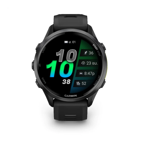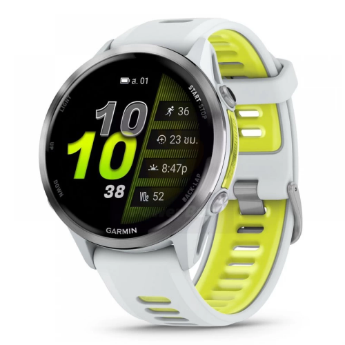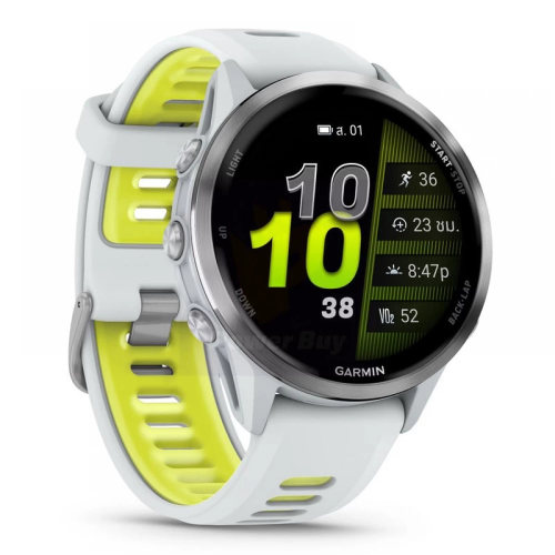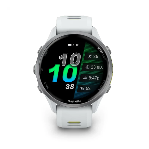 เป็นสมาร์ทวอทช์ GPS ระดับพรีเมียมที่ออกแบบมาสำหรับนักวิ่งและนักกีฬาโดยเฉพาะ มาพร้อมหน้าจอ AMOLED ขนาด 47 มม. ที่สว่างสดใสและรองรับโหมด Always-On เพื่อการอ่านข้อมูลได้ง่ายในทุกสภาพแสง ตัวเรือนผลิตจากไทเทเนียมที่แข็งแรงแต่เบา สวมใส่สบายตลอดวัน โดยฟีเจอร์เด่นของ Forerunner 970 ได้แก่ การวัดพลังงานที่ใช้ในการวิ่ง (Running Power) และการวิเคราะห์พลศาสตร์การวิ่ง (Running Dynamics) โดยไม่ต้องใช้เซนเซอร์เสริม นอกจากนี้ยังมีฟีเจอร์การฝึกซ้อมขั้นสูง เช่น การติดตามความแปรปรวนของอัตราการเต้นหัวใจ (HRV) การประเมินความพร้อมในการฝึกซ้อม (Training Readiness) พร้อมแผนที่ในตัวและการรองรับ Garmin Pay สำหรับการชำระเงินแบบไร้สัมผัส ทั้งหมดนี้ช่วยให้นักกีฬาสามารถฝึกซ้อมและแข่งขันได้อย่างมีประสิทธิภาพและปลอดภัยยิ่งขึ้น
