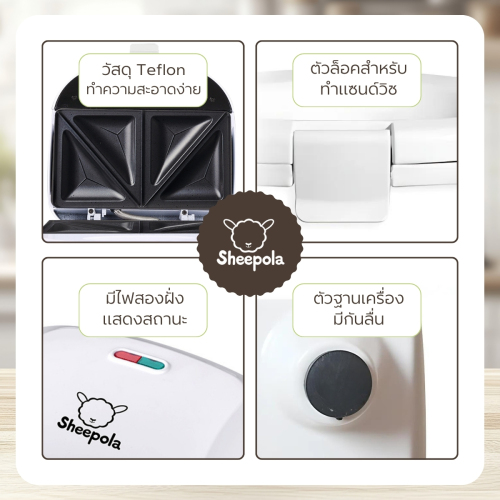 ช่องทำแซนวิทเคลือบด้วนเทปล่อนทำให้ขนมปังไม่ติดเครื่อง