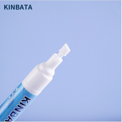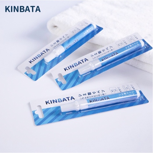 2. เขย่าปากกา เปิดหัวปากกา และกดหัวปากกาตรงคราบสกปรก หลังจากนั้นน้ำยาจะซึมออกมา