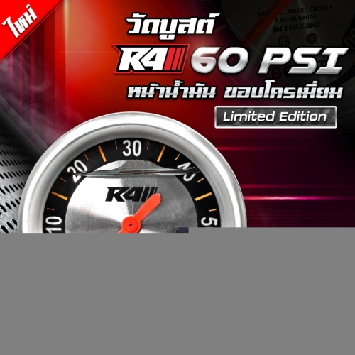 มาใหม่ !! เกจวัดบูสต์ R4 35 ปอนด์ 60 ปอนด์ รุ่น Limited ขอบโครเมี่ยม หน้าเงาวิ้งวับ สวยงาม แท้ 100% ( รับประกันน้ำมันรั่วซึม 1 ปี )