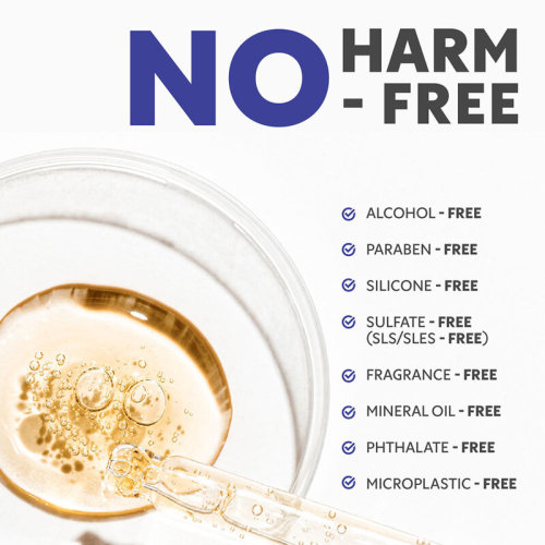 • ปราศจากพาราเบน, แอลกอฮอล์, น้ำหอม, ซิลิโคน, ซัลเฟต, พทาเลต, มิเนอรัลออยล์ และไมโครพลาสติก