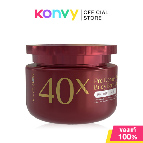 JENNIE MOON 40X Pro Derma Plus Body Booster 250g ครีมบำรุงผิวกาย เนื้อเจลบางเบา ซึมง่าย ไม่เหนียวเหนอะหนะ ด้วยสุดยอดสารสกัด 40X Active Ingredients White Complex เช่น Tranexamic Acid และ Kojic Acid Dipalmitate ช่วยลดเลือนจุดด่างดำ และปรับสีผิวให้สม่ำเสมอ พร้อมด้วย 39 Amino, Glutathione และ Niacinamide ช่วยฟื้นบำรุงผิวหมองคล้ำ และปกป้องผิวที่โดนทำร้ายจากแสงแดดและมลภาวะ เผยผิวเนียนนุ่ม แลดูกระจ่างใส ดูสวยสุขภาพดี