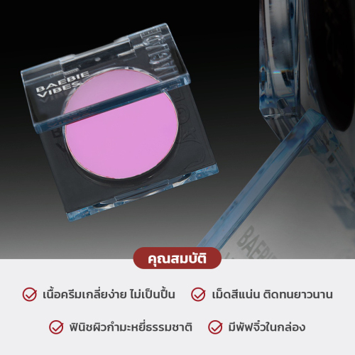 • จุดเด่น: ครีมบลัชเบบี้แพ็คเกจสวยแกลม เพิ่มความสนุกหลากหลายโทน พร้อมคงคอนเซปป์เกลี่ยง่าย ไม่เป็นปื้น เม็ดสีแน่น และติดทนเหมือนเดิม