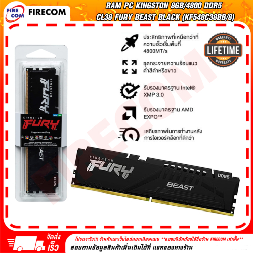 แรม RAM PC Kingston 8Gb/4800 DDR5 CL38 FURY Beast Black (KF548C38BB/8) สามารถออกใบกำกับภาษีได้
