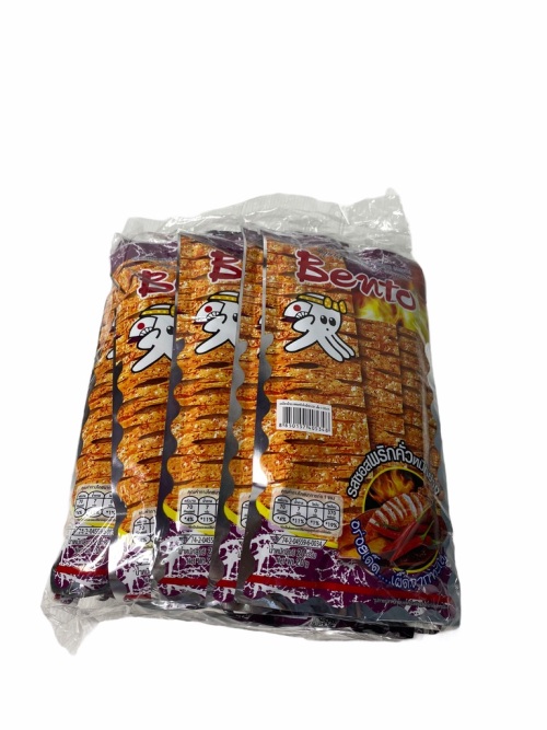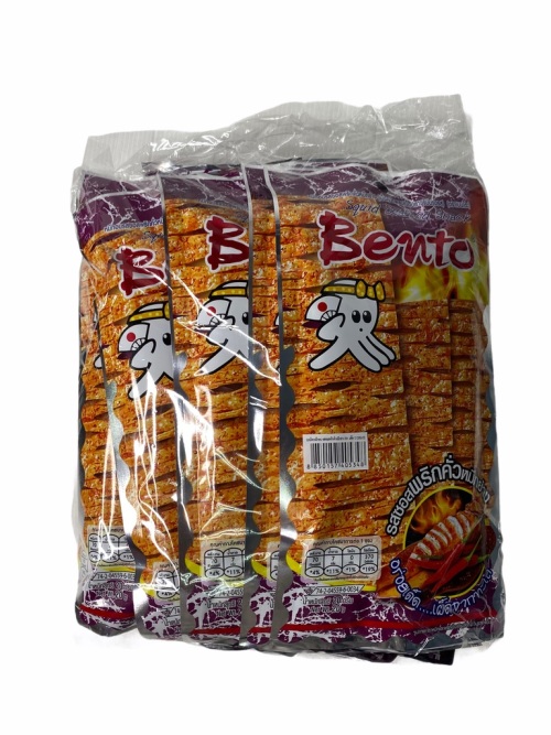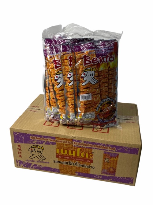 Bento New Flavor Bento Chili Sauce Roasted Squid Squid Seafood Snack Chilli Sauce Grill Squid Purple 20g 1 box/contain 36 sachets, wholesale price for the whole box.