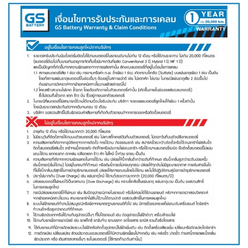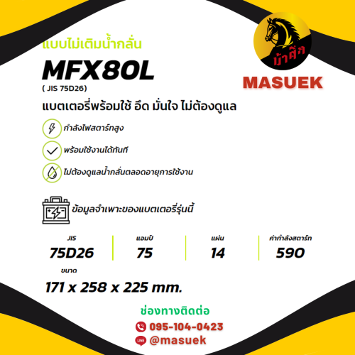 ประเภทแบตเตอรี่ : MF (Maintenance Free) แบตกึ่งแห้ง