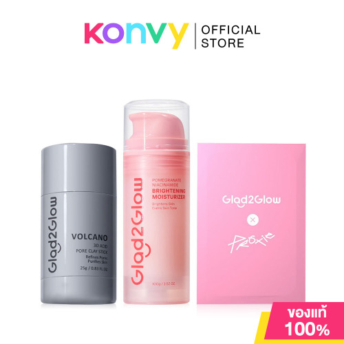 Glad2Glow Set Pomegranate Moisturizer 100g + Volcano Clay Stick 25g + [Free! Proxie Photo Card 1pc] เซทผลิตภัณฑ์บำรุงผิวหน้า ช่วยให้ผิวชุ่มชื้น กระจ่างใส พร้อมช่วยทำความสะอาดอย่างล้ำลึก และปลอบประโลมผิวที่มีปัญหาสิว