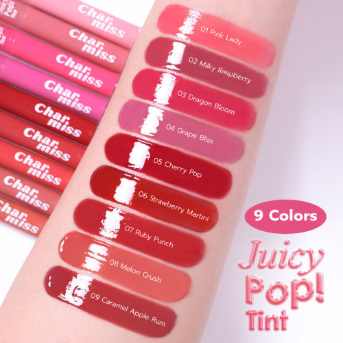 Charmiss Juicy Pop Tint 1.6g #02 Milky Raspberry ยิ่งเม้ม ยิ่งวาว ยิ่ง POP! ด้วยทินท์กลอสหัวเหล็กสุดเฟรชที่ให้ความรู้สึกเย็นสบายตั้งแต่สัมผัสแรก มอบริมฝีปากฉ่ำวาวแบบกระจกดูสุขภาพดี เนื้อกลอสแบบอิมัลชัน เบาสบาย ไม่เหนียวเหนอะหนะ ติดทนยาวนาน มีส่วนผสมของน้ำถึง 28% ช่วยให้ทาแล้วชุ่มชื้นแบบไม่หนักปาก เสริมด้วยเทคโนโลยี Mirror GLOdrip ที่เคลือบริมฝีปากด้วยออยล์เนื้อบางเบา ให้ความวาวและล็อคความชุ่มชื้นได้ยาวนาน พร้อมบำรุงริมฝีปากด้วยสารสกัดซีบัคธอร์นที่อุดมด้วยวิตามิน C ให้ริมฝีปากดูเนียนนุ่ม อิ่มฟู มีชีวิตชีวา ทาได้ทุกวัน ทุกลุค เหมาะสำหรับลุคปากอิ่มฟู เปล่งประกาย