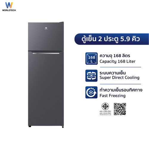 ตู้เย็น 2 ประตู Worldtech 5.9 คิว 168 ลิตร รุ่น WT-MRF-172