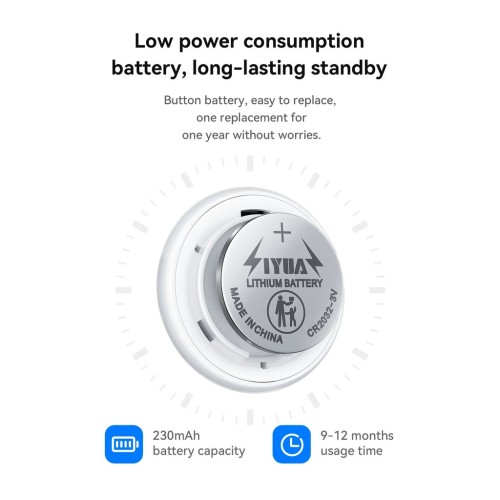 - แบตเตอรี่แบบถ่านกระดุม CR2032 สามารถถอดเปลี่ยนได้ ใช้งานยาวนาน 9-12 เดือนต่อก้อน