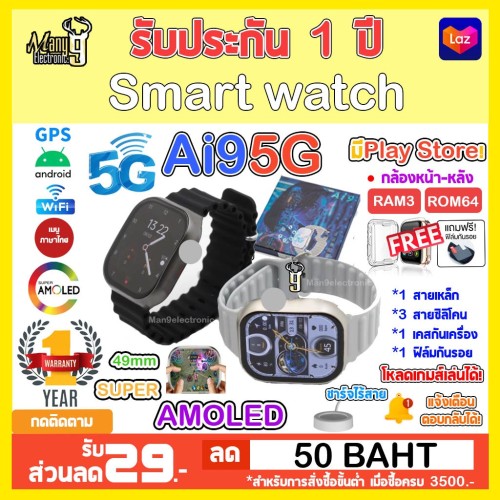 นาฬิกาข้อมือ Smart watch ULTRA 5G กล้องหมุนได้ AMOLED 49 mm 5G วิดีโอคอล ความจำ 128GB