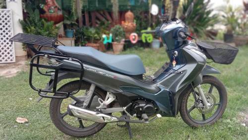 แร็คท้ายมอเตอร์ไซค์เวฟ 125i ปลาวาฬไฟ LED ปี 2022 ถึงปี 2024 สีดำเงา One