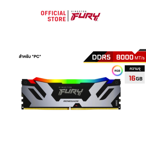 - 16GB (1x16GB) DDR5 8000MT/s CL38 FURY Renegade Silver/Black RGB XMP