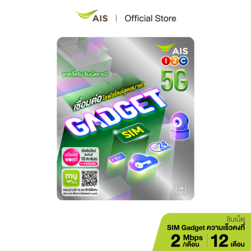 Gadget SIM ซิมสำหรับอุปกรณ์ไอที : สำหรับลูกค้าเปิดซิมใหม่เท่านั้น | สำหรับใช้งานคู่กับกล้องวงจรปิดที่สามารถใส่ซิมการ์ดได้ |* ไม่สามารถใช้งานโซเชียลมีเดีย