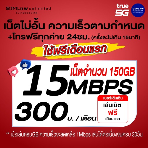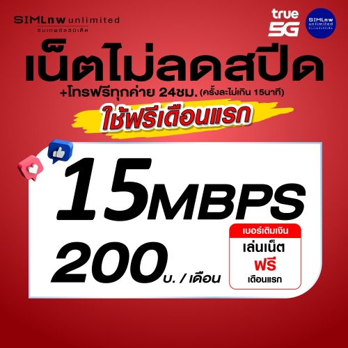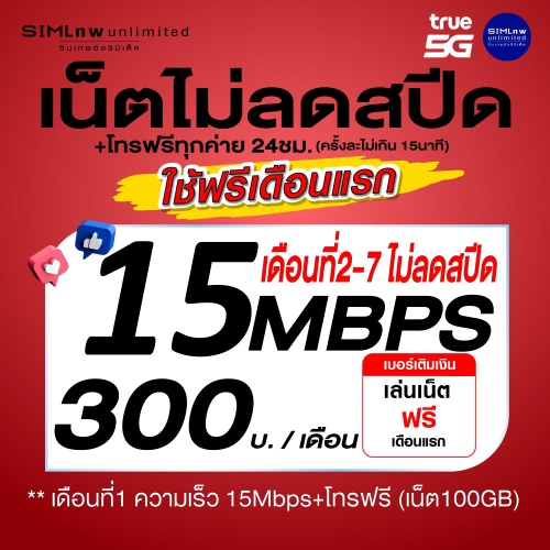 เดือนที่ 2-7 "เน็ตไม่ลดสปีด" ความเร็ว 15Mbps+โทรฟรีทุกค่าย