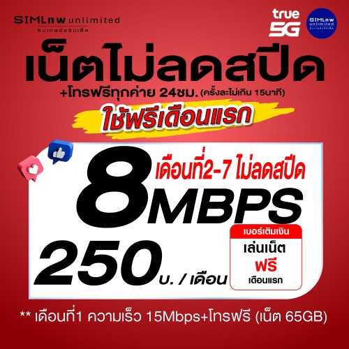 เดือนที่ 2-7 "เน็ตไม่ลดสปีด" ความเร็ว 8Mbps+โทรฟรีทุกค่าย