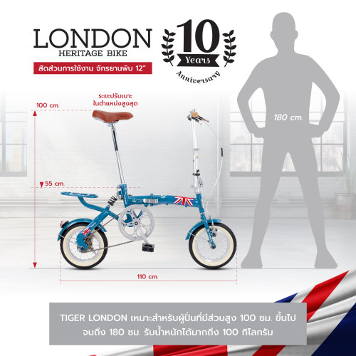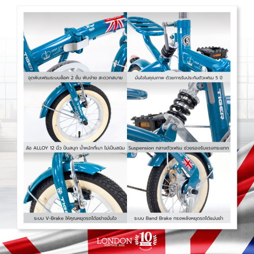 จักรยานพับได้ แบรนด์ Tiger รุ่น London ล้อ12" พร้อมรับประกันเฟรมนาน 5 ปี ชมพู One