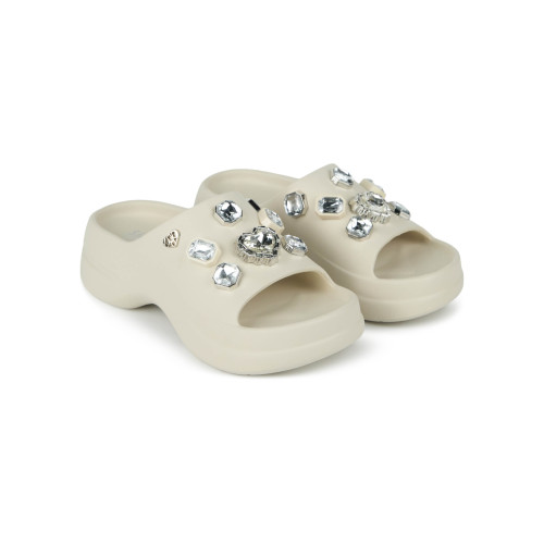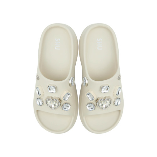 | รูปแบบดีไซน์ | สายคาดหน้าเท้า ตกแต่งด้วยอะไหล่เพชร หลากหลายรูปทรง ดีเทลระยิบระยับแวววาว เพิ่มเสน่ห์และความหรูหราในรองเท้าทรงแพลตฟอร์ม | ||||